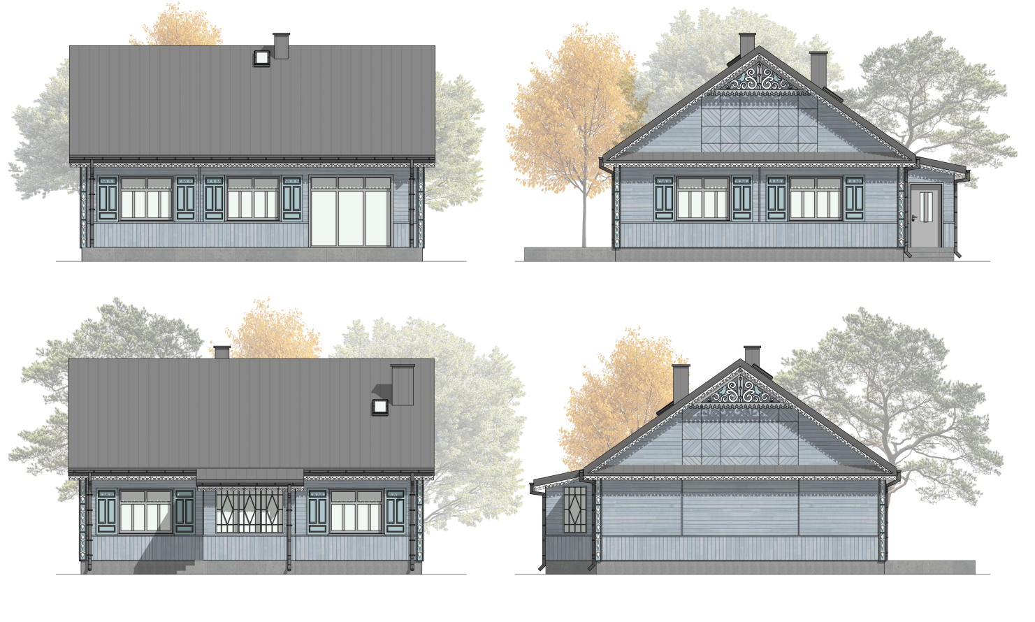 ZEFIR – Podlaski 93 to parterowy dom o powierzchni około 93 m², inspirowany tradycyjną zabudową Podlasia, w której ważną rolę odgrywają drewniane elewacje, okiennice i dekoracyjne wycięcia w szczytach. To projekt dla osób, które lubią połączenie autentycznego, regionalnego charakteru z wygodnym i nowoczesnym układem wnętrza.